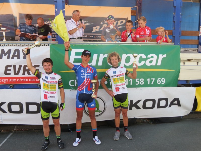 En D3-D4 victoire Geoffroy CHENEVEAU (T Chalonnes Cyc) 2ème Jean-Philippe MORILLE (St Leger Cyclisme) 3ème Yannick MAREAU (TU Anjou 49)